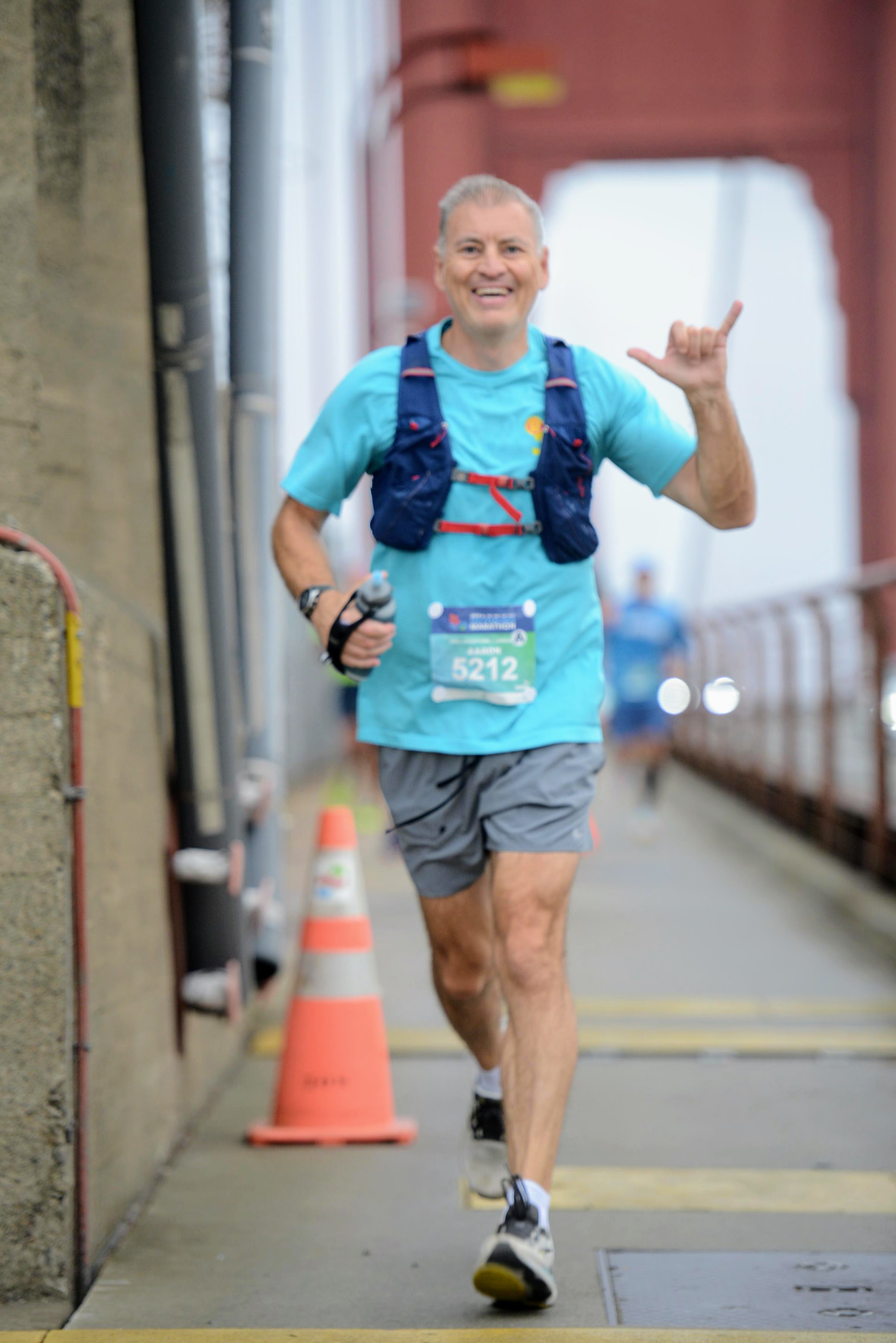 Considered one of the most beautiful and challenging marathon courses. Beautiful because you run along the Embarcadero waterfront, up and over the Golden Gate Bridge (twice!), then through Golden Gate Park and back to the Bay to finish in front of the historic Ferry Building. But also challenging due to the 700 feet of uphill that you run along the course, not to mention the corresponding 700 feet back down. But, I have to say, the beauty of the course wins out. I kept thinking to myself, "I get to do this!" Yes, it's a challenge, but a challenge I am so privileged to be able to take on.